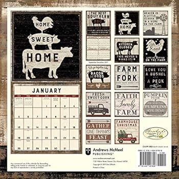 The weathered, painted signs in Dan DiPaolo's Country Farmhouse 2020 Wall Calendar are a perfect complement to the ongoing popularity of the farmhouse decorating trend. Each spread has a time-worn, wood-look patina that fits in perfectly, whether your farmhouse taste tends toward classic, modern, urban, or French. Besides its clean and roomy 2020 monthly grids, the calendar also includes a handy September-December 2019 spread.